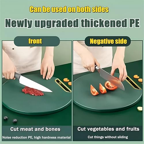 - The updated two-sided cutting board features a 360 degree rotating design, allowing vegetables to be easily and effectively chopped with minimal noise and non-slip, making it perfect for all cooking lovers.