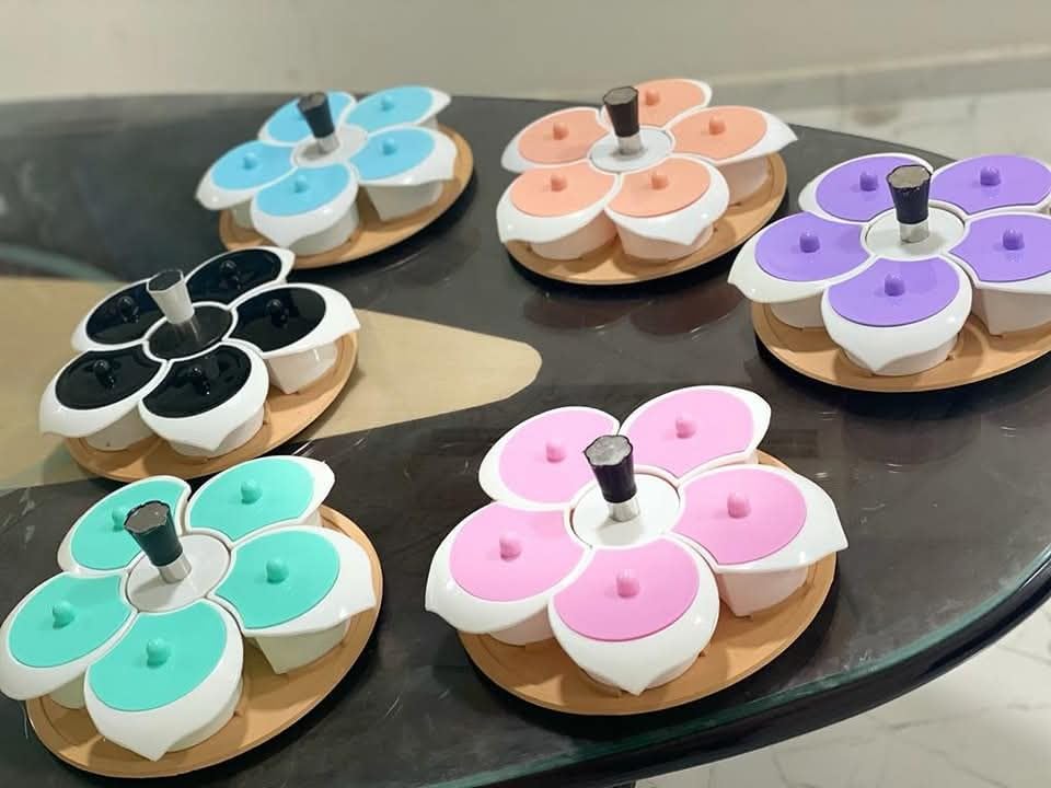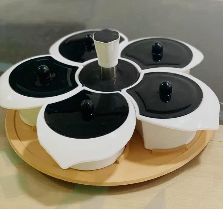 - DESIGN LAYOUT: Features 6 individual compartments arranged in a flower-like pattern with a central holder, perfect for organised serving