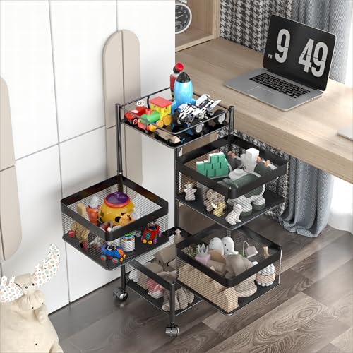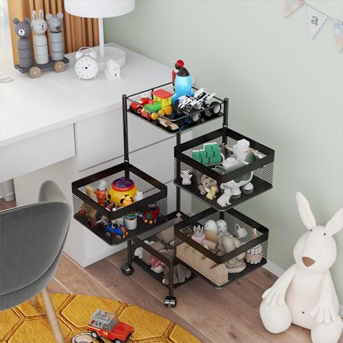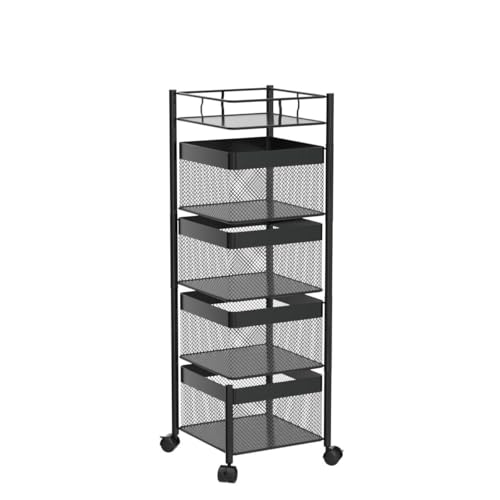 xinyourui - Rotating Multi-Layer Kitchen Storage Shelf,Xinyourui Fruit Vegetable Storage Basket,Floor-Standing Rolling Vertical Shelving,Multifunctional Household Shelf for Bedroom,Bathroom(Black, 4 Tier-Square)