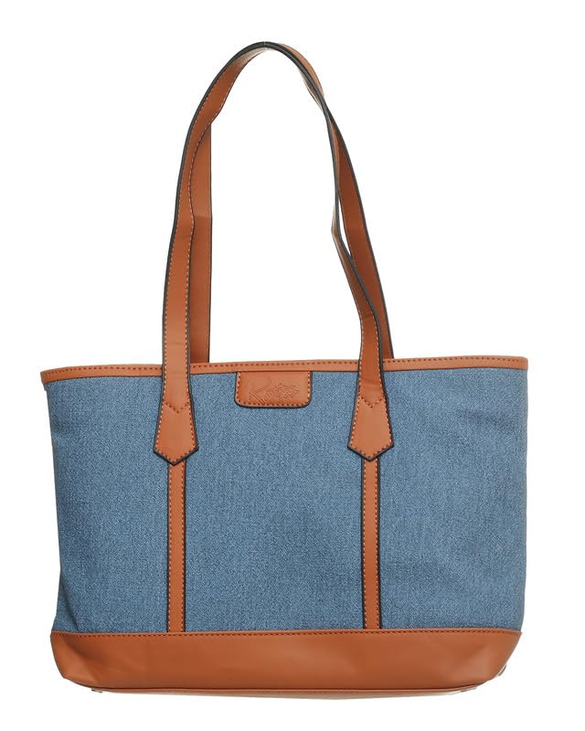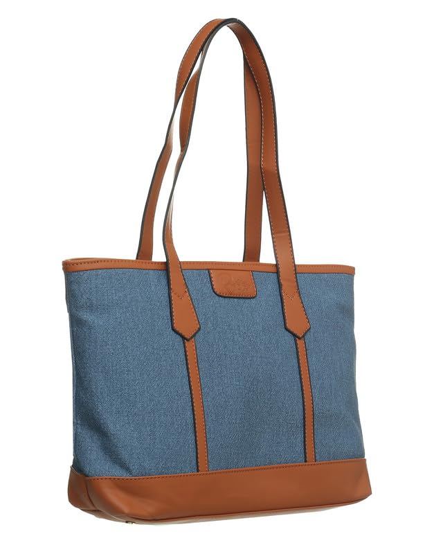 Rotitoo - Women's Leather Handbag Size 26 x 41 cm - Dark Blue and Havan