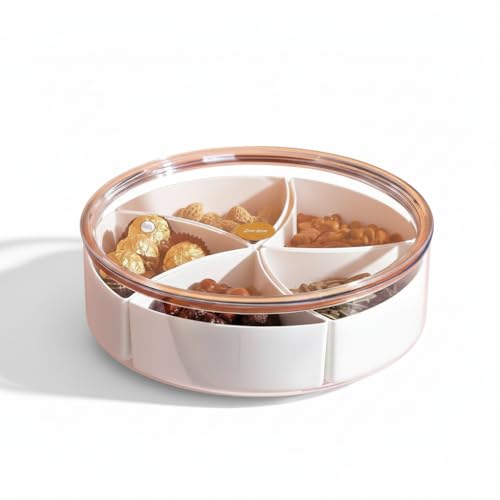 Generic - طبق تسالي اكريليك مدور بخمس تقسيمات مع غطاء – تنظيم أنيق للتقديم اليومي AR