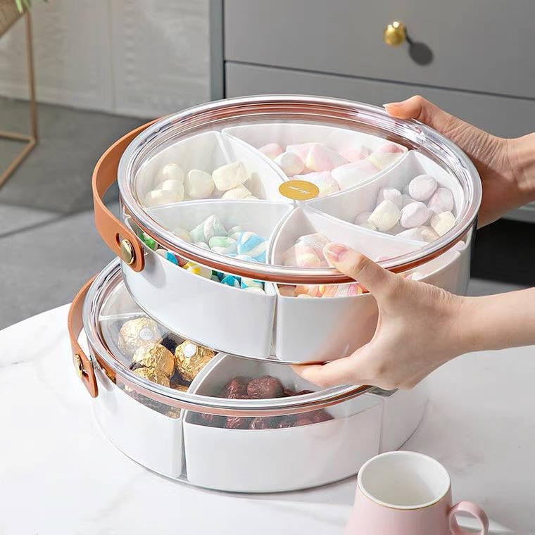 - طبق تسالي مدور بخمس تقسيمات لتنظيم الأنواع المختلفة.