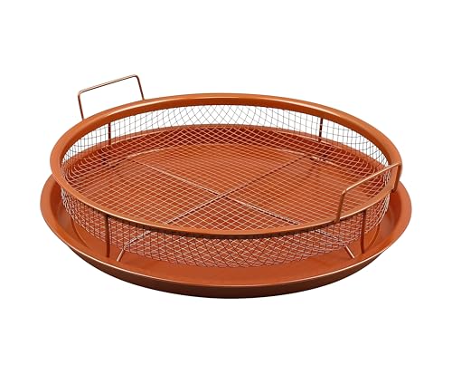 Generic - سلة دائرية للمقلاة الهوائية - سلة تحمير نحاسية مقاومة للالتصاق مع صينية، هيكل من الصلب الكربوني، بدون الحاجة لزيت أو تقليب الطعام، مثالية للحصول على نتائج مقرمشة
