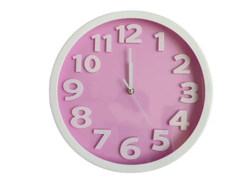 - Analog Round Wall Clock Battery Saving 3D Profiled Letters Large Copper Coil Pink White 12 by 12 inches