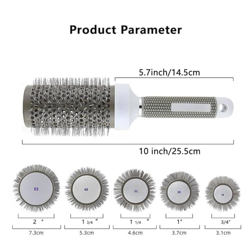 Generic - Round Brush for Blow Drying,Thermal Nano Ionic Round Drying Hair brush Professional for Styling Hair Curling Brush-silver (43mm)