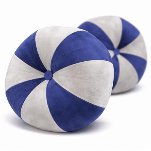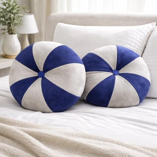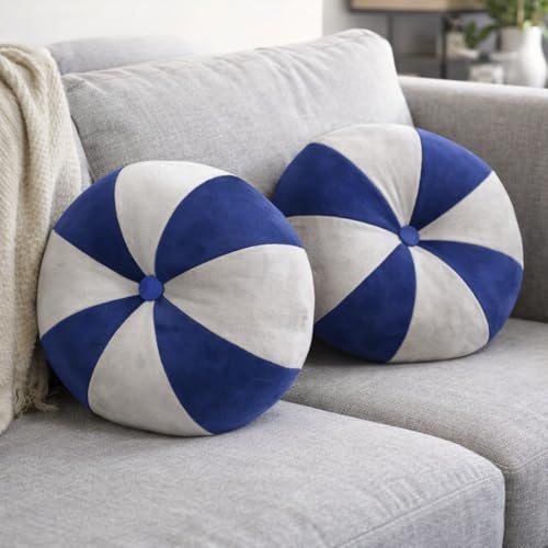 Generic - Round Decorative Cushion – Ultra-Soft Suede & Linen Mix – Super Soft Fiber Filling – Modern Swirl Design – Perfect for Sofa, Bed, Chairs & Living Room Décor – Blue & White, 2 Pack