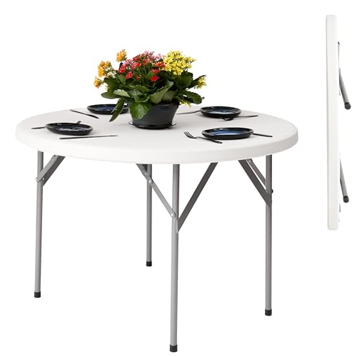 - STABLE AND STRONG – With sturdy legs, a durable frame, and a load capacity of 200 kg (440lbs), this 110 cm (44 in) folding round table stays steady and won't wobble, making it great for meals, games, and crafts.