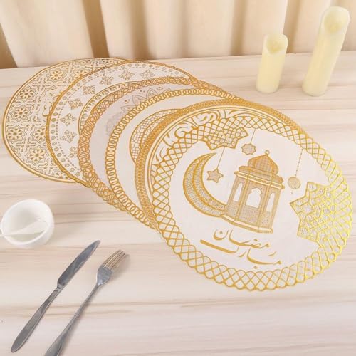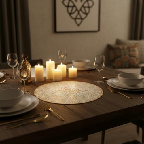 - 【SPECIAL Festive Atmosphere】The gold color and decorative pattern reflect the ambience of Ramadan and adds a sense of distinct and luxury to any coaster place, making the home look more elegant and harmonious, creating a festive ambiance for guests and residents, while enhancing the artistic spirit and visual coordination, makes the piece an essential element highlight the beauty of tables and comods, adding a luxurious and practical festive touch in every daily or seasonal use. ✮