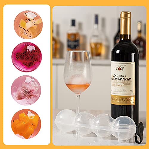 Spaceshoop - Round Ice Cube Mold 4 Hole Whiskey Ice Ball Maker Mold, Sphere Ice Cube Tray DIY Mold Ice Ball Maker for Whiskey and Cocktails, Keep Drinks Chilled ( 2Pcs, 2.2 Inch )