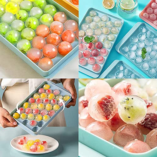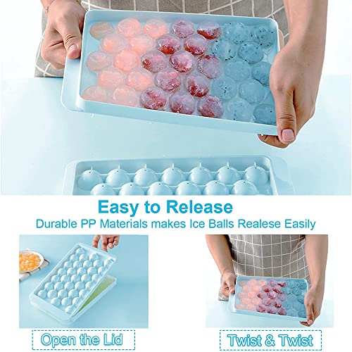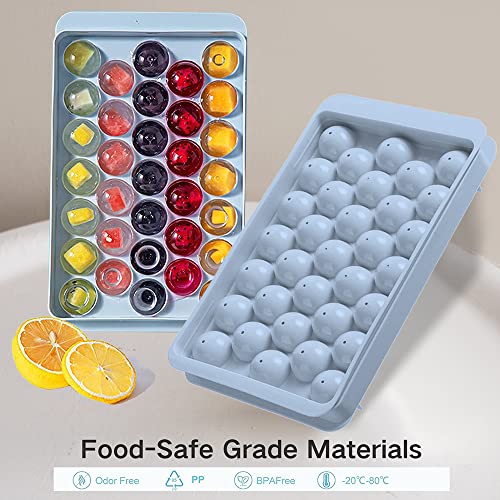 Exrp - Round Ice Cube Tray with Lid,Ice Ball Maker Mold for Freezer,Mini Circle Ice Cube Tray Making 1 in X 66PCS Sphere Ice Chilling Cocktail Whiskey Tea & Coffee (2 Packs Blue)