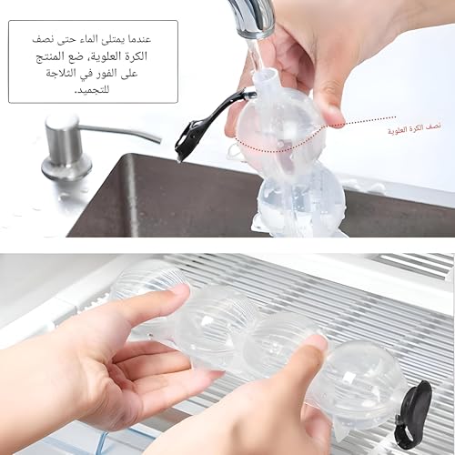 - When filling the tray with water, it's recommended to hold the adjacent ball in your hand for control. Fill only three slots halfway, then place the tray flat in the freezer. After freezing, leave the tray out for a minute for easier removal of the ice balls.