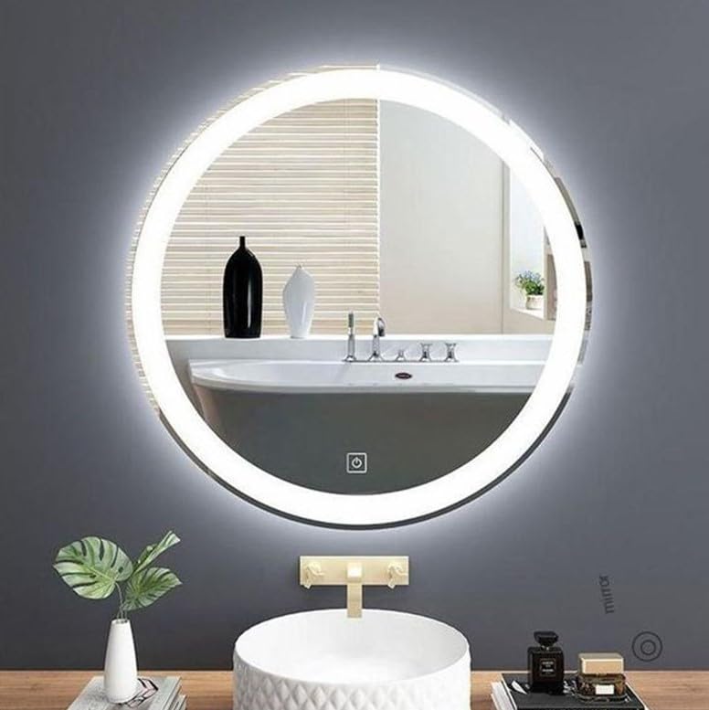 Generic - مراة دائرية - خط مفرغ - اضاءة LED بيضاء مع مفتاح لمس (قطر 80 سم - سمك 4 ملم)