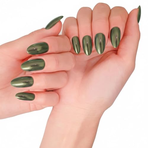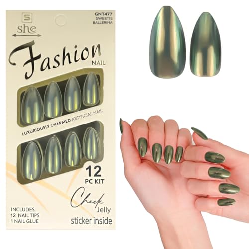 Generic - أظافر صناعية بطرف دائري، تغطية كاملة مسبقة التشكيل وصمغ أظافر احترافي، لتثبيت سريع وسهل، مجموعة من 12 ظفر صناعي وزجاجة صمغ واحدة للأظافر، أخضر مينت