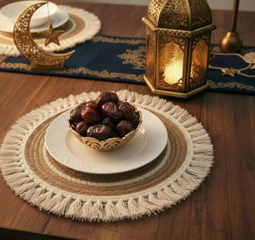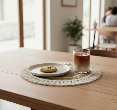 - ✅ 【تصميم دائري فني】 يتميز الكوستر بشكل دائري متقن مع شراشيب بوهو تضيف عمق بصري وحركة أنيقة للطاولة، مما يعزز تنسيق السفرة أو الطاولة الجانبية ويجعل أي جلسة تقديم أكثر انسجامًا وجاذبية للعين، كما يساعد في تنظيم الأطباق والأكواب بشكل متناسق، ويخلق تأثيرًا طبيعيًا هادئًا وجماليًا يبرز الذوق الرفيع في تنسيق الطاولة وإضافة لمسة ديكور متكاملة. 🎨