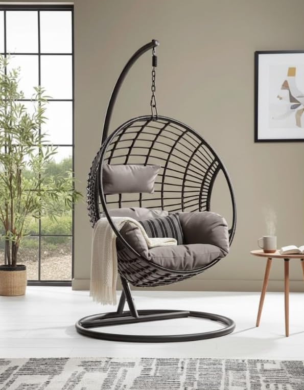 - GENEROUS DIMENSIONS: Round swing measures 90 cm in diameter with a 2-metre height, offering spacious and comfortable seating for relaxation.
