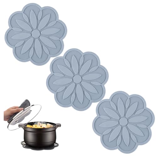 Generic - مفارش دائرية من السيليكون للأطباق الساخنة والأواني الساخنة، قاعدة للأواني الساخنة لأسطح العمل والطاولات وحاملات الأواني ومفارش مكان مسند الملاعق (عبوة من 3 قطع) (لون رمادي)