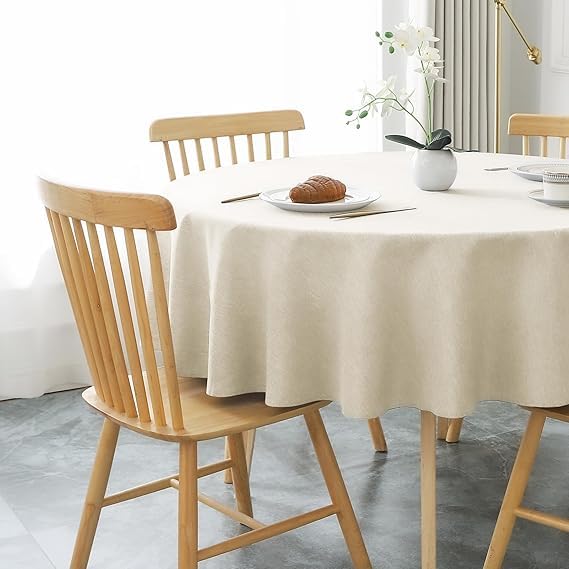 Generic - Round Tablecloth Diameter 120 cm, Beige Linen Look Tablecloths Washable Tablecloth Made of Polytester Water-Repellent with Lotus Effect, Durable Scratch-Resistant for Living Room, Dining Room,
