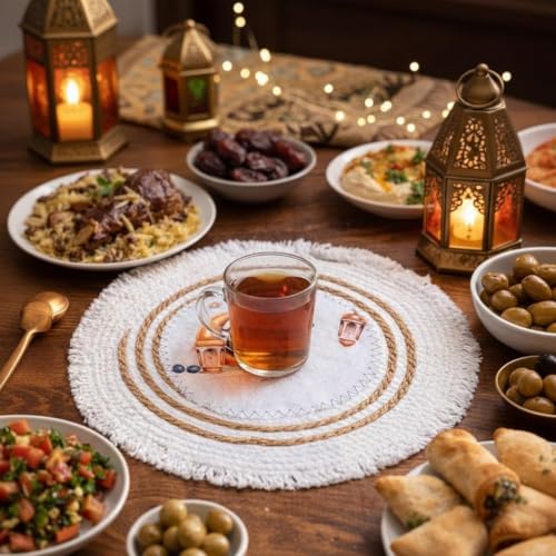 - متعدد الاستخدامات: مناسب لتزيين طاولات الطعام والقهوة خلال شهر رمضان المبارك والمناسبات الإسلامية، ويمكن استخدامه كقطعة ديكور دائمة في المنزل