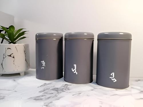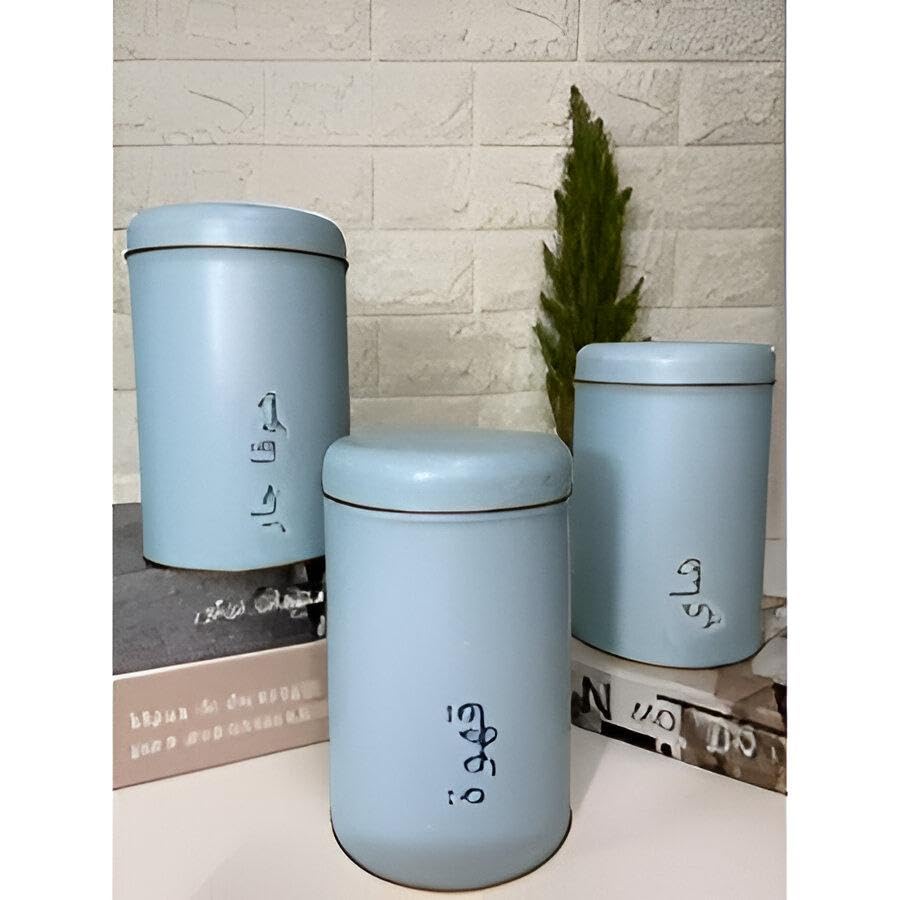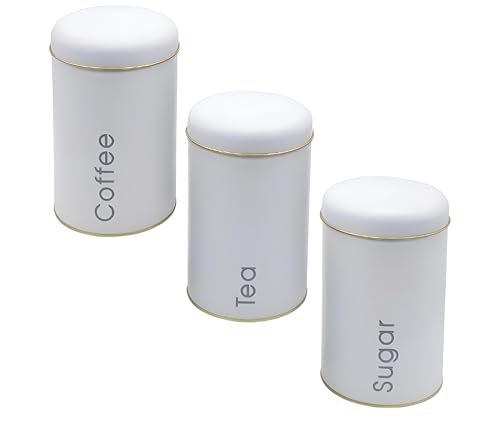 Generic - Round Tin Set - Round tin set of three containers with secure lids, perfect for storing sugar, tea, and coffee; durable, rust-resistant metal, multiple color finishes to brighten your kitchen.
