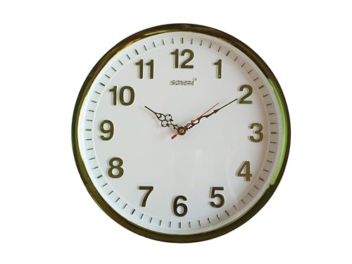 - ساعة حائط دائرية ارقام بارزة عصرية تناظرية موفرة للبطارية ملف كهربائي كبير اللون اخضر عقرب احمر مقاس 33 في 33 سم