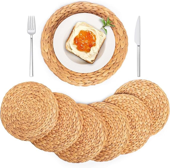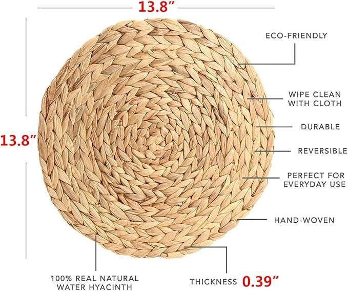 - 【Eco-Conscious Choice】: We care about the environment. These placemats are made from sustainable water hyacinth, a rapidly renewable resource. By choosing these round woven placemats, you're making an eco-friendly statement and contributing to a greener planet.