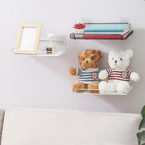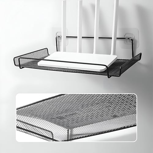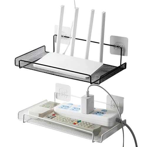 Generic - رف راوتر - سهل التركيب، تخزين مثبت على الحائط لأجهزة توجيه WiFi، وأجهزة التحكم عن بعد، والأساسيات المنزلية، مثالي لغرف المعيشة وغرف النوم والحمامات بتصميم الحافة المرتفعة (2 قطعة)