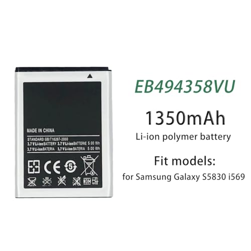 Generic - بطارية بديلة طراز EB494358VU متوافقة مع جالاكسي جيو S5660، S5830، S8530 جالاكسي ايس، سعة 1350 مللي أمبير في الساعة من روكسي فون