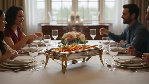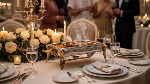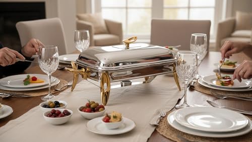 Alsaif Gallery - سخان طعام مستطيل من رويال الفريدو، فضي وذهبي، صغير سعة 1.5 لتر + شمعة واحدة
