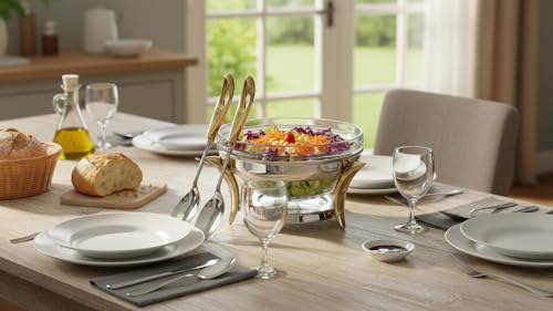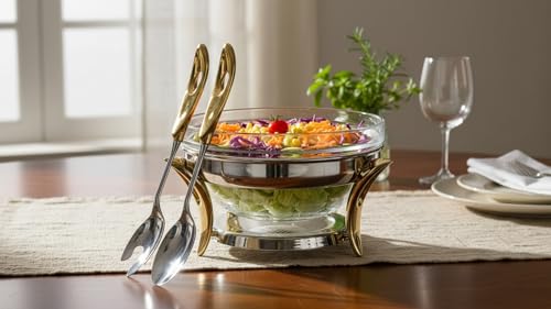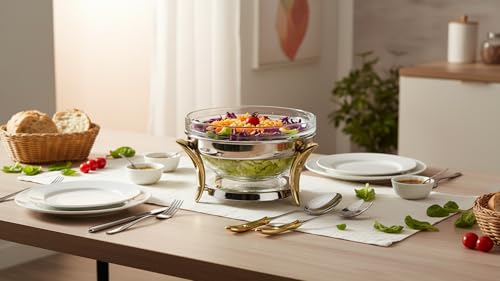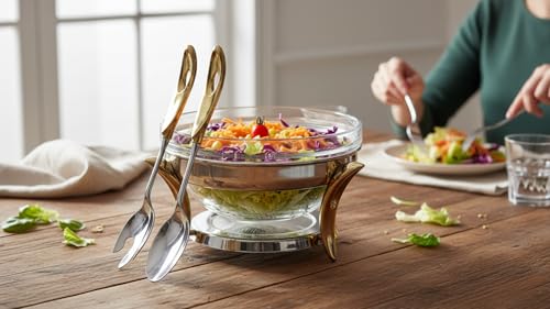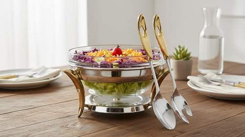 Royal Alfredo - وعاء سلطة من رويال الفريدو، فضي وذهبي، كبير / 3 لتر