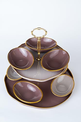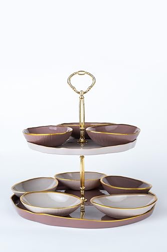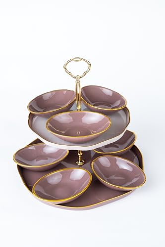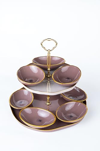 Royal Alfredo - stand 2 tier set beige * Pink + 8p oval bowl multi color