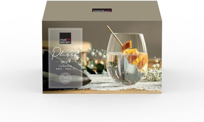- Royal Leerdam Plisse Set of 12Pcs ( 4 cup 500ml, 4 Cup 210ml, 4 Tumbler 440ml )