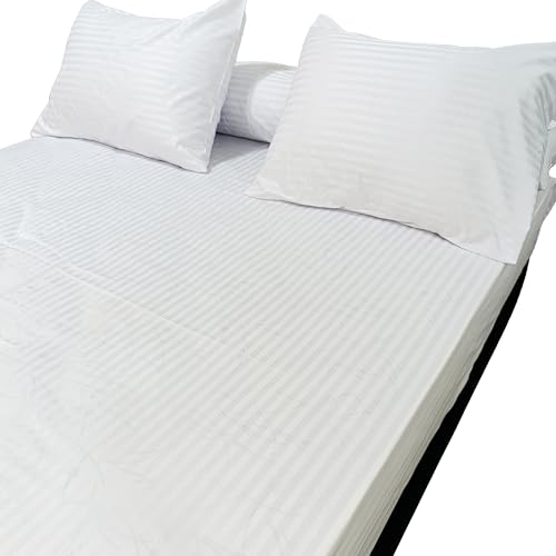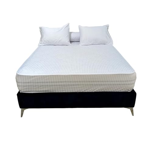 Royal Palace Furniture - ملاية سترايب مجوز من رويال بالاس مكونة من 4قطع ، 1 ملاية + 2 كيس خددية + 1 كيس مخدة لون ابيض