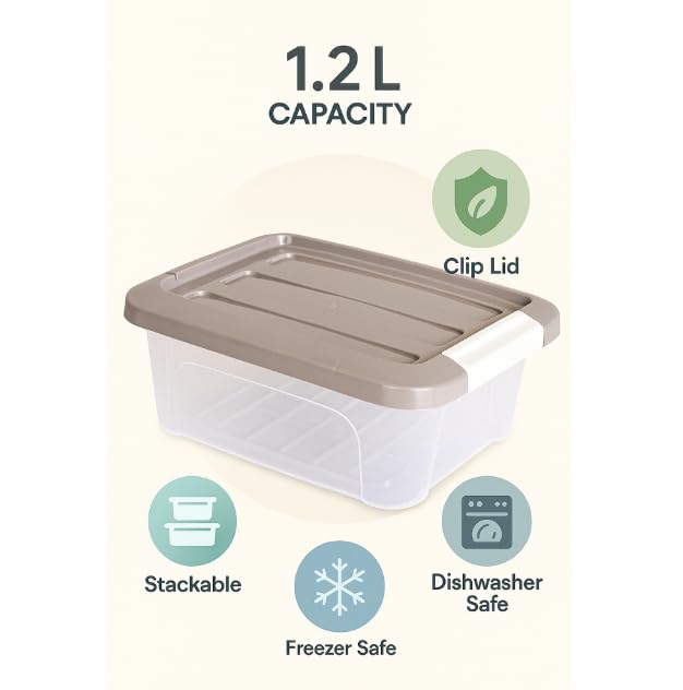 Generic - Royal Premium Clear Plastic Storage Box with Secure Locking Lid Durable Organizer for Home, Closet & Office Stackable Container for Clothes,Toys and Accessories Transparent with Beige Lid (1.2 Liter)