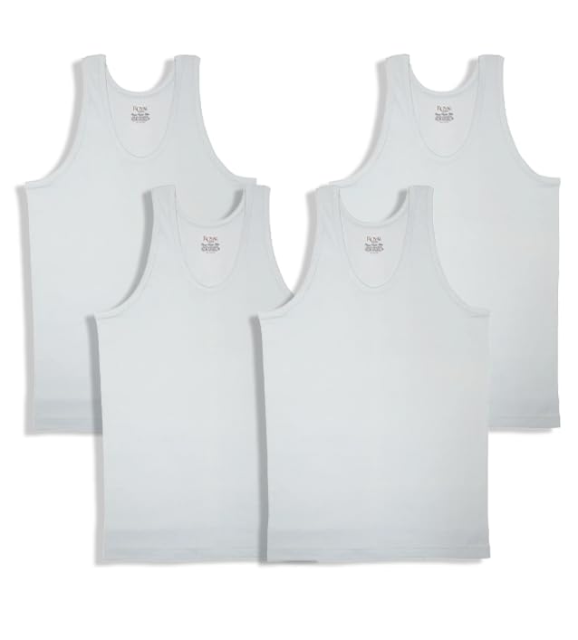 Royal Tex - Men Set of 4 Cotton Round Neck Sleeveless Undershirt White XXL - Code5