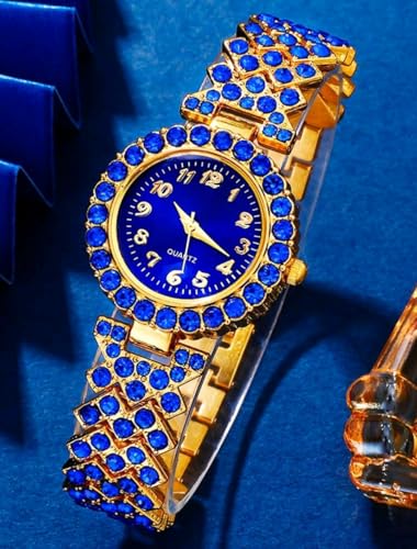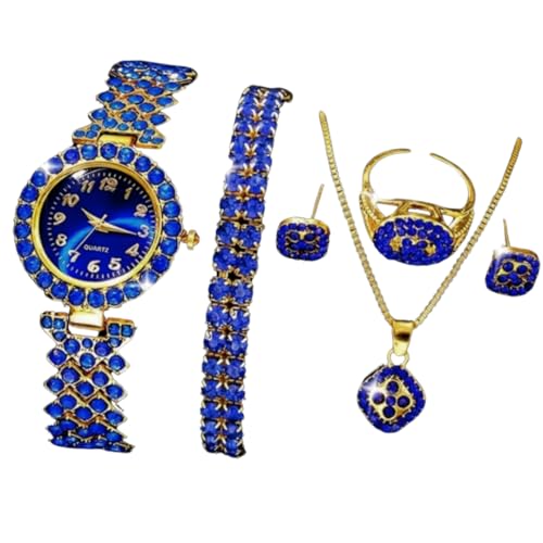 Generic - Royal Women's Watch Set – Blue Studded Watch with Bracelet, Necklace, Ring and Earring – Complete Luxury