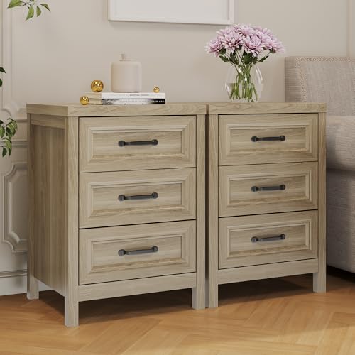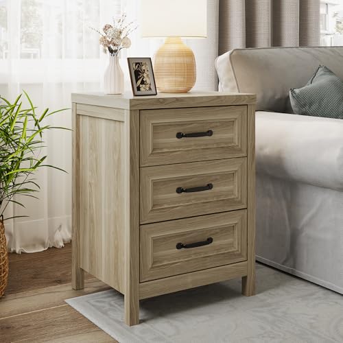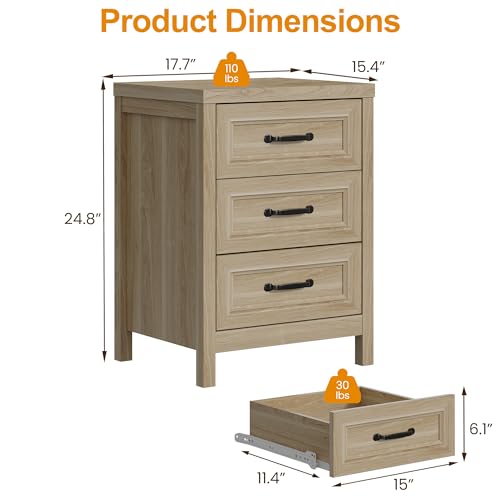 RoyalCraft - RoyalCraft 3 Drawer Nightstand, Small Dresser for Bedroom, Modern Wood Nightstand with Drawers,Accent Chest of Drawers for Closet, Living Room, Entryway, Hallway, Natural Wood Tone