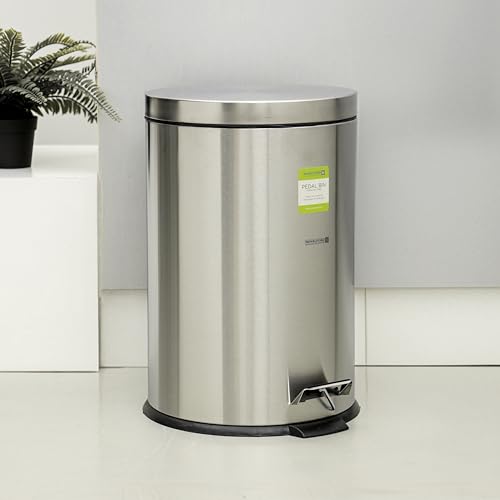 Royalford - Royalford 20 Litre Stainless Steel Pedal Bins RF12092 Round Hands Free Kitchen Garbage Trash Bins Soft-Close Lid