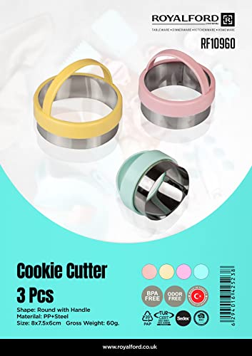 Royalford - قوالب بسكويت دائرية من 3 قطع من الفولاذ المقاوم للصدأ RF10960 بمقبض من البولي بروبيلي مناسب للخبز من رويال فورد، متعدد الألوان