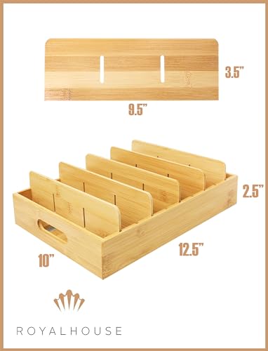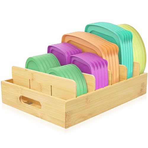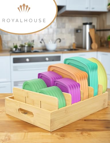 RoyalHouse - RoyalHouse Bamboo Food Container Lid Organizer with Adjustable Dividers, Box for Kitchen Storage And Organization