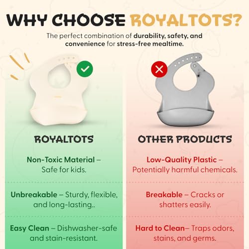 RoyalTots - مرايل اطفال لتناول الطعام من رويال توتس - مرايل سيليكون متينة للاطفال من عمر 6-12 شهر فما فوق | مرايل سيليكون خالية من BPA للاطفال الصغار من عمر 1-3 سنوات