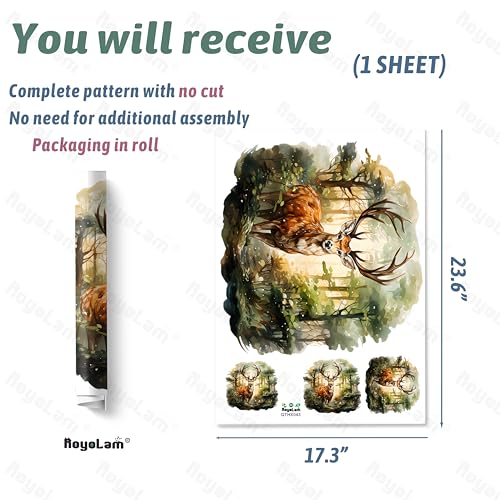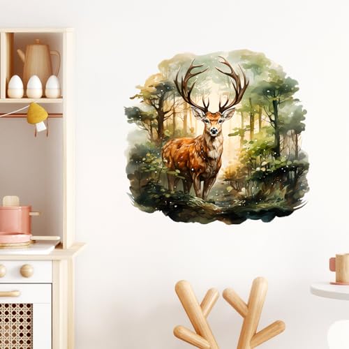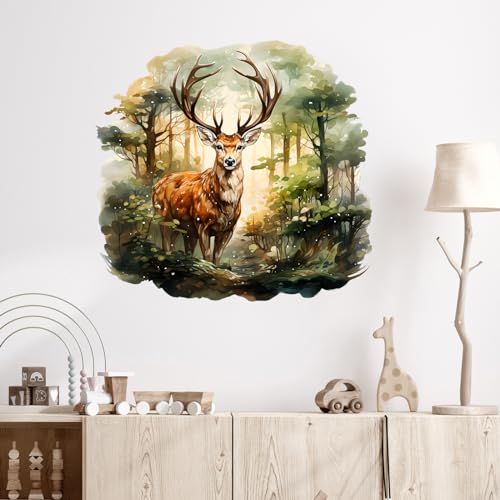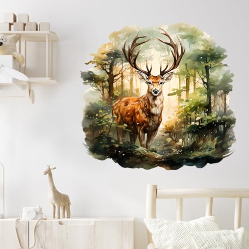 RoyoLam - ملصق حائط بتصميم غزال وغابة جميلة من رويولام، ملصق حائط قابل للازالة للتقشير واللصق لتزيين الحائط للاطفال في الفصل الدراسي ومرحلة ما قبل المدرسة وغرفة المعيشة وغرفة اللعب وغرفة النوم والمدرسة