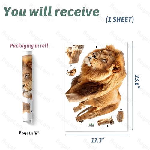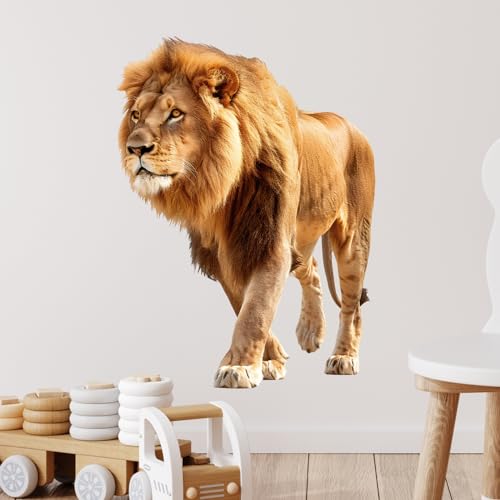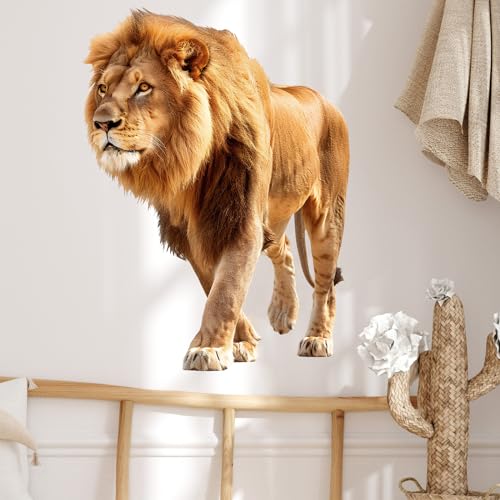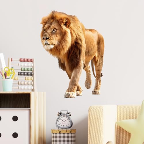 RoyoLam - ملصق حائط بتصميم اسد يمشي رائع نابض بالحياة من رويولام، ملصق حائط قابل للازالة للتقشير واللصق لتزيين الحائط للاطفال في الفصل الدراسي ومرحلة ما قبل المدرسة وغرفة المعيشة وغرفة اللعب وغرفة النوم