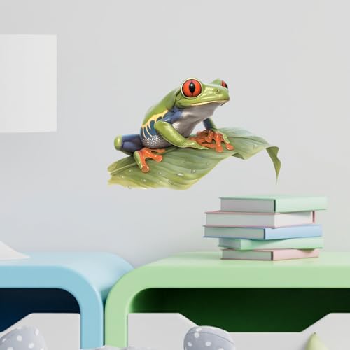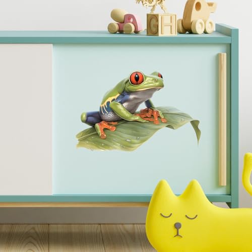 RoyoLam - Lifelike Red Eyed Tree Frog Wall Decal Nursery Animal Wall Sticker Removable Peel and Stick Wall Art Decor for Kid Baby Classroom Preschool Living Room Playroom Bedroom School