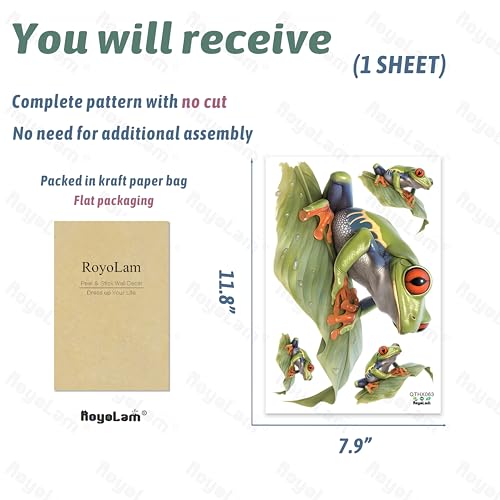 - Size: You will get one sheet of 11.8'' x 7.9''(30cm x 20cm); flat packaging; finished size of this tree frog wall sticker is approximately 11.4'' x 7.9''(29cm x 20cm)