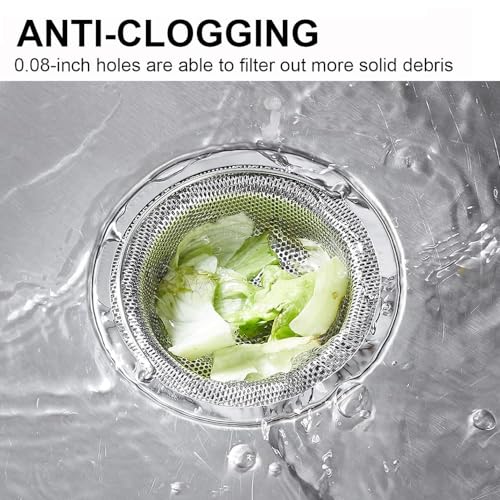 - Anti-clogging: the porous and wide-hole design of the sink strainer ensures smooth water flow, and the high-density mesh can effectively catch food residues and prevent clogging of the rinse system. And the kitchen sink drain strainer can be held firmly in place even with strong water flow and cannot be easily moved.