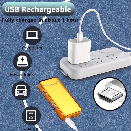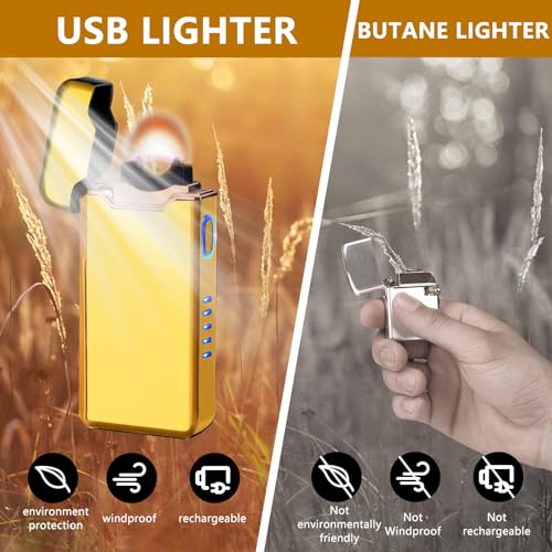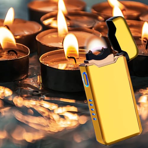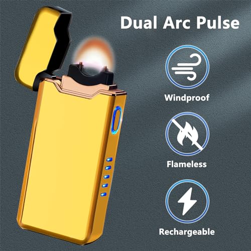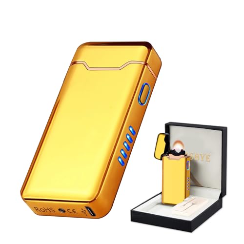 RSBYE - Electric Lighter USB Rechargeable Plasma Arc Lighter, High Power Flame Torch Lighter Windproof with LED Battery Indication for Candle, Incense, Camping Gifts (Gold)