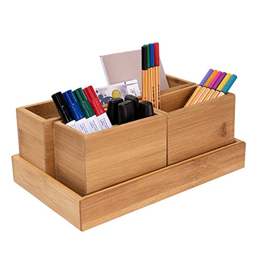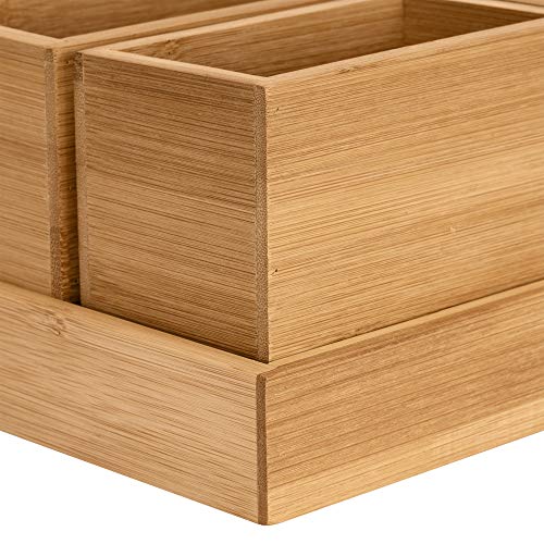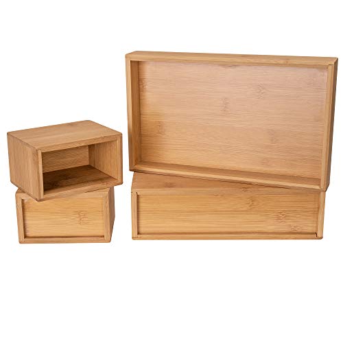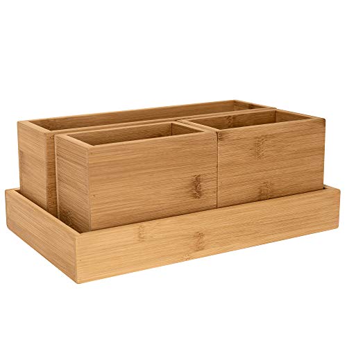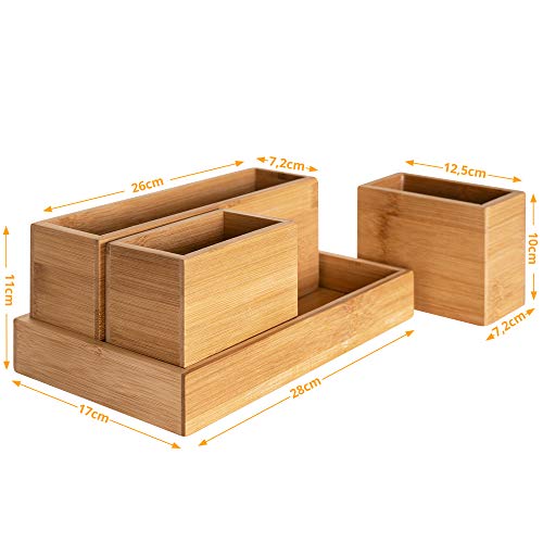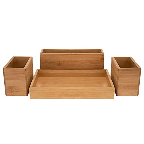 RSW24 - Bamboo Utensil Box, Set of 4, Organiser Boxes, Natural, Storage Boxes, Desk Organiser