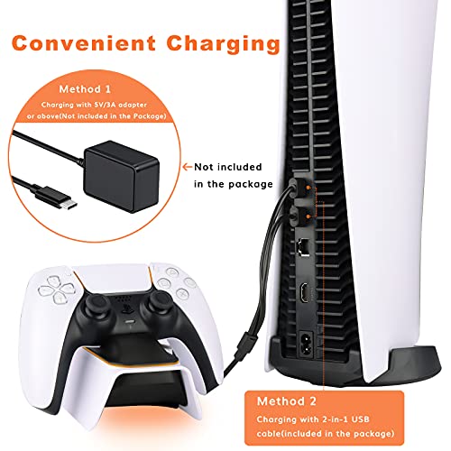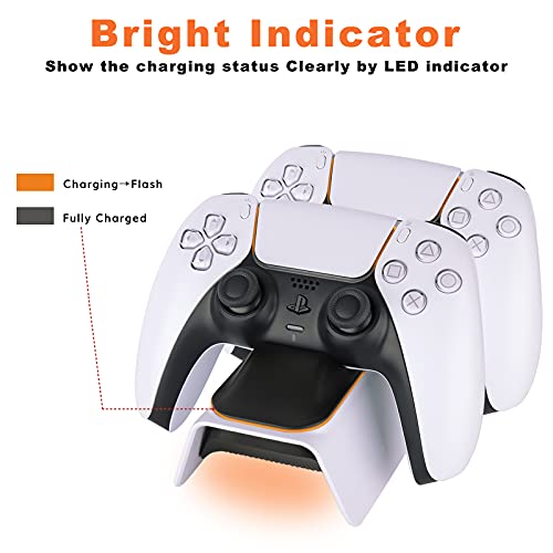 - 【Simply Place and Charge】Just drop dualsense controllers into the ps5 charger dock and they start to charge. The charging port on charging station is firm and keep the ps5 controller securely seated.