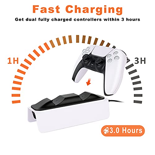 - 【Direct and Fast Charging】Upgrade direct charging, the PS5 DualSense Controllers can be fully charged in under 3 hours. Save your time and get more fun. (Please note: Only if the input power source is at least 5V/3A, the controllers can be fully charged under 3 hours.)
