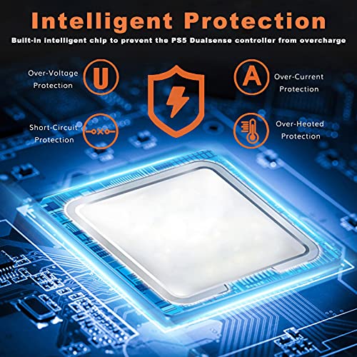 - 【Intelligent Safety Protection】The built-in intelligent chip provides intelligent overload protection, protects your PS5 controllers from over-charging, over-voltage, overheat, and short-circuit.